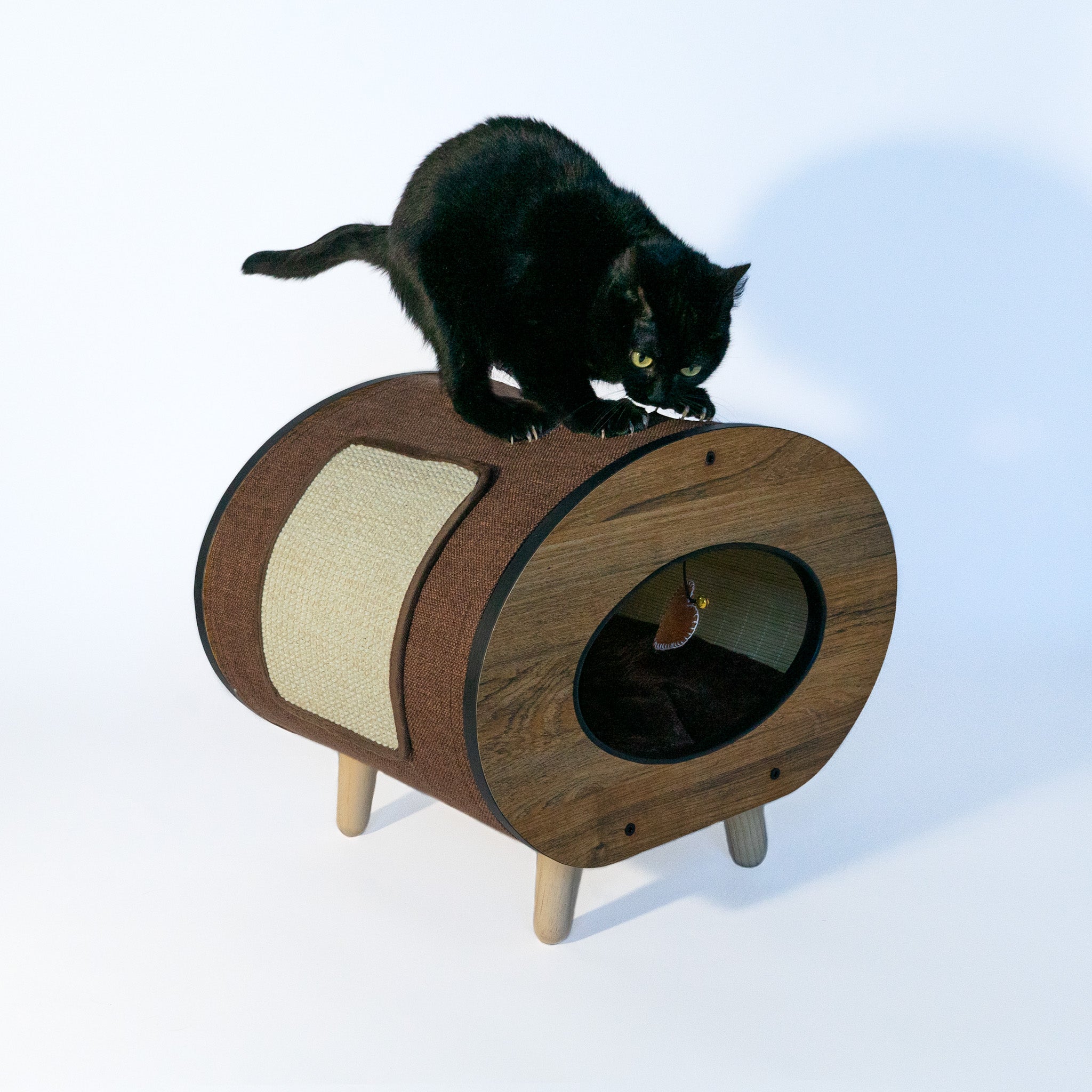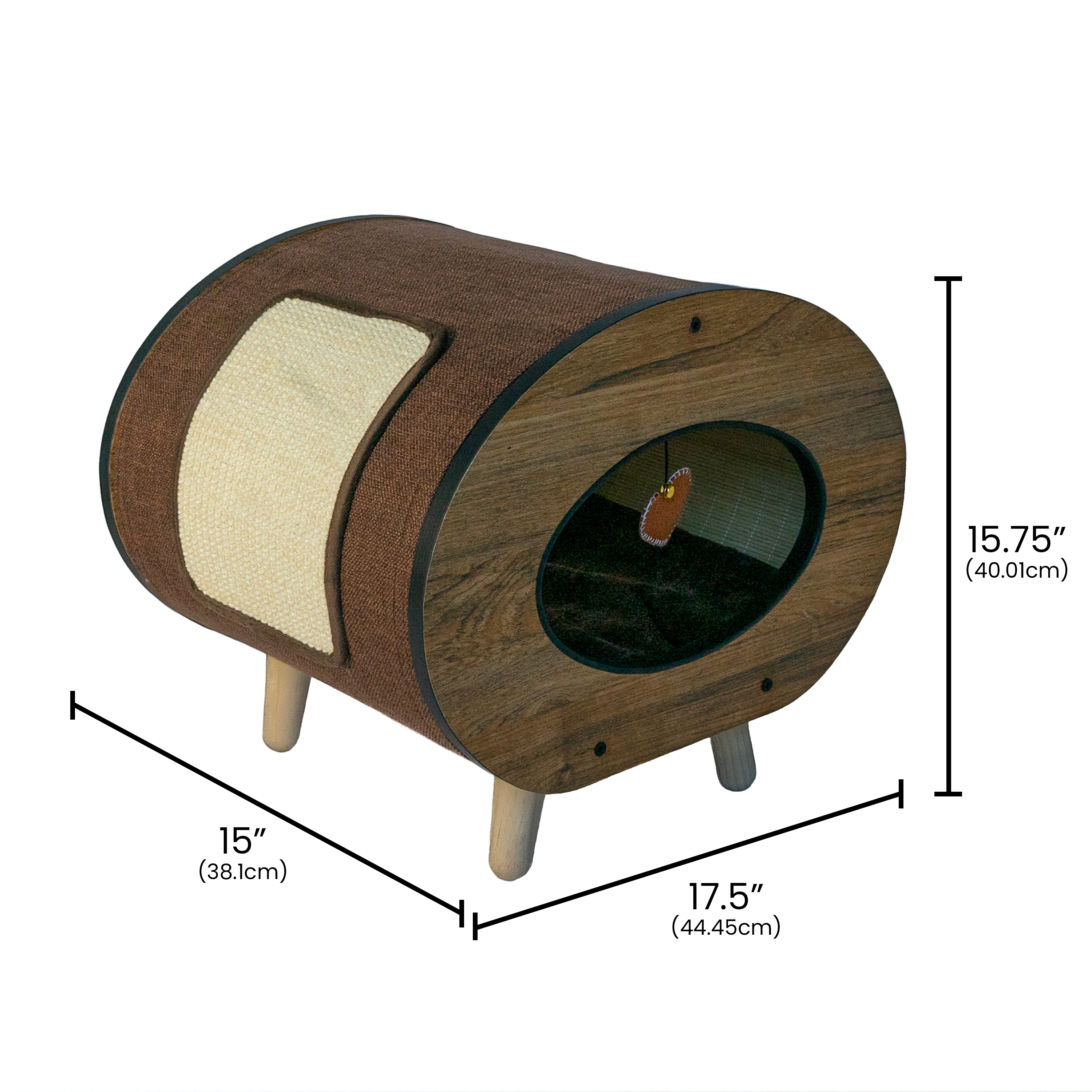 The Two by Two Carlsbad is a multi-level Cat Activity Play Set that combines Jute covered Scratching Walls with an Enclosed Hiding Space and removable Cat Bed. Great space for Hide and Seek fun. Removeable padded bed provides a comfortable space for lounging and long naps. Dangling Heart play balls provide additional level of activity and fun. Easy to assemble.